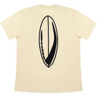 Our off-white Ola - Surfboard collection t-shirt is designed with a small wave, on the front, at chest height on the left side. On the back a surfboard is centered and the size is large. The print color is black.