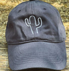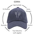 Our navy blue Cactus collection cap is designed with two white embroideries. The first is the silhouette of a cactus in the center and the second is the name of the brand on the back of the left side and in small.