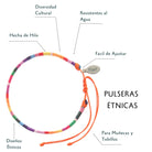 Our ethnic bracelets are handmade, of thread. In addition, they have a silver badge with the brand name.